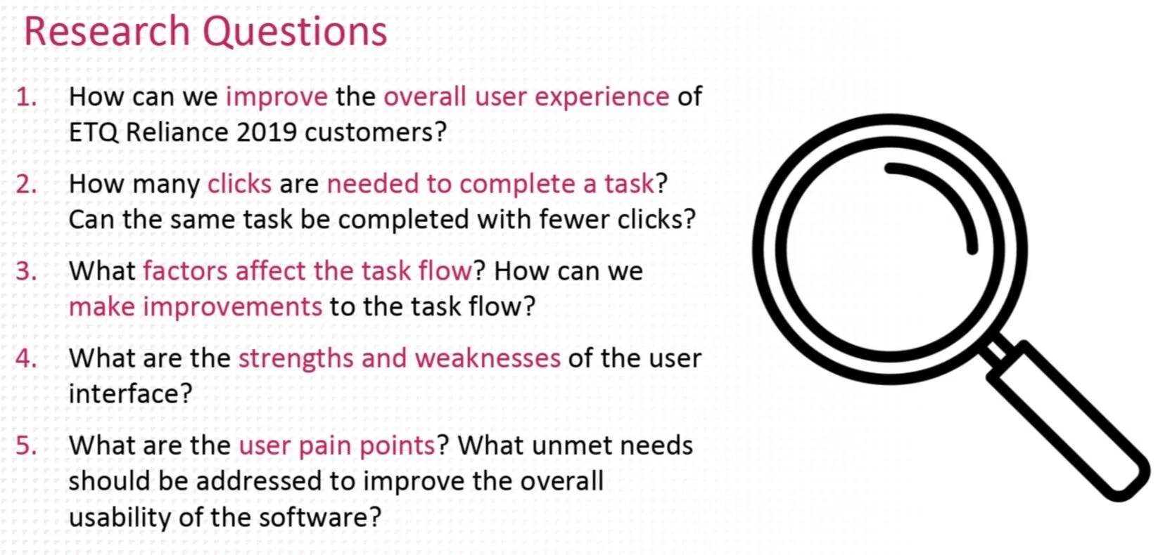 Lead the first usability tests at ETQ to improve the design and usability of Reliance 2019 (quality, EHS and compliance management SaaS product).
