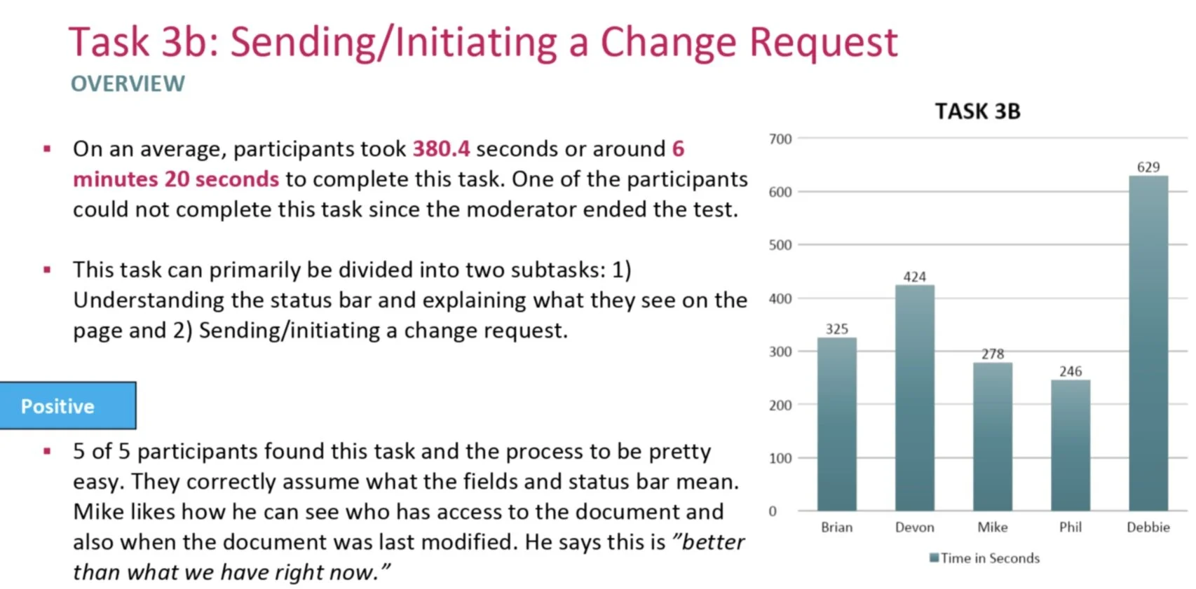 The report included a list of usability problems categorized as major, moderate, minor, and positive.